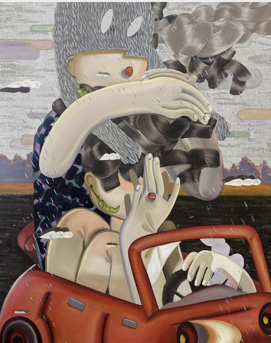 Ms Dyu is a figurative oil painter who explores the irrational aspects of human behavior. Her grotesque and mischievous art creates an atmosphere of childish joy.